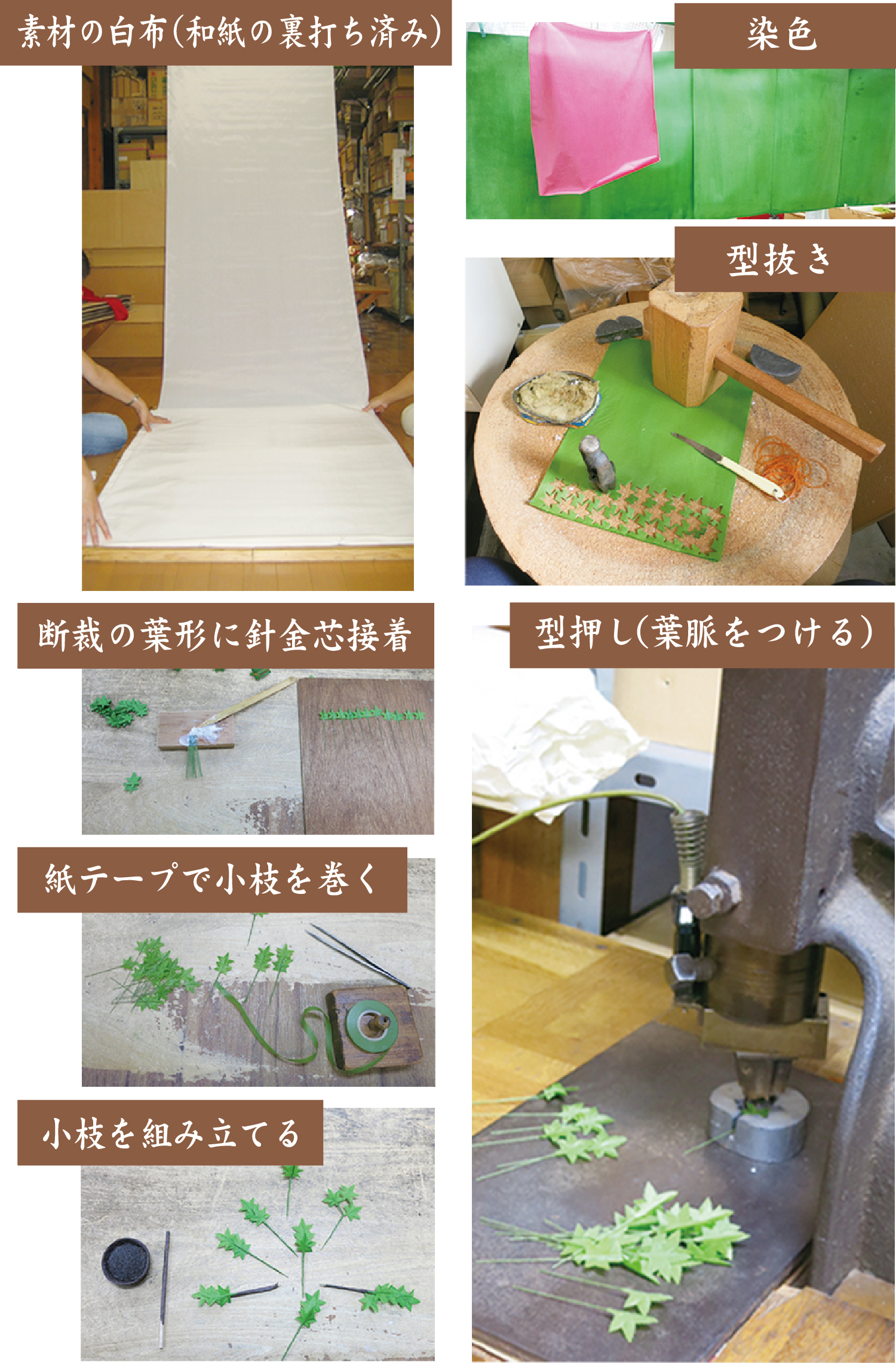 造花が出来るまでの工程を、大まかな流れで紹介いたします。一組の木に仕上がるまでには、