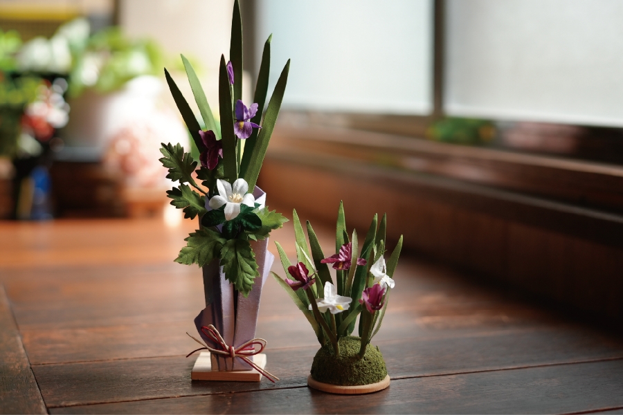 雛人形や五月人形などの節句人形と共に飾られる、小さくも可憐な造花たち。全て手作業で染色から裁断、